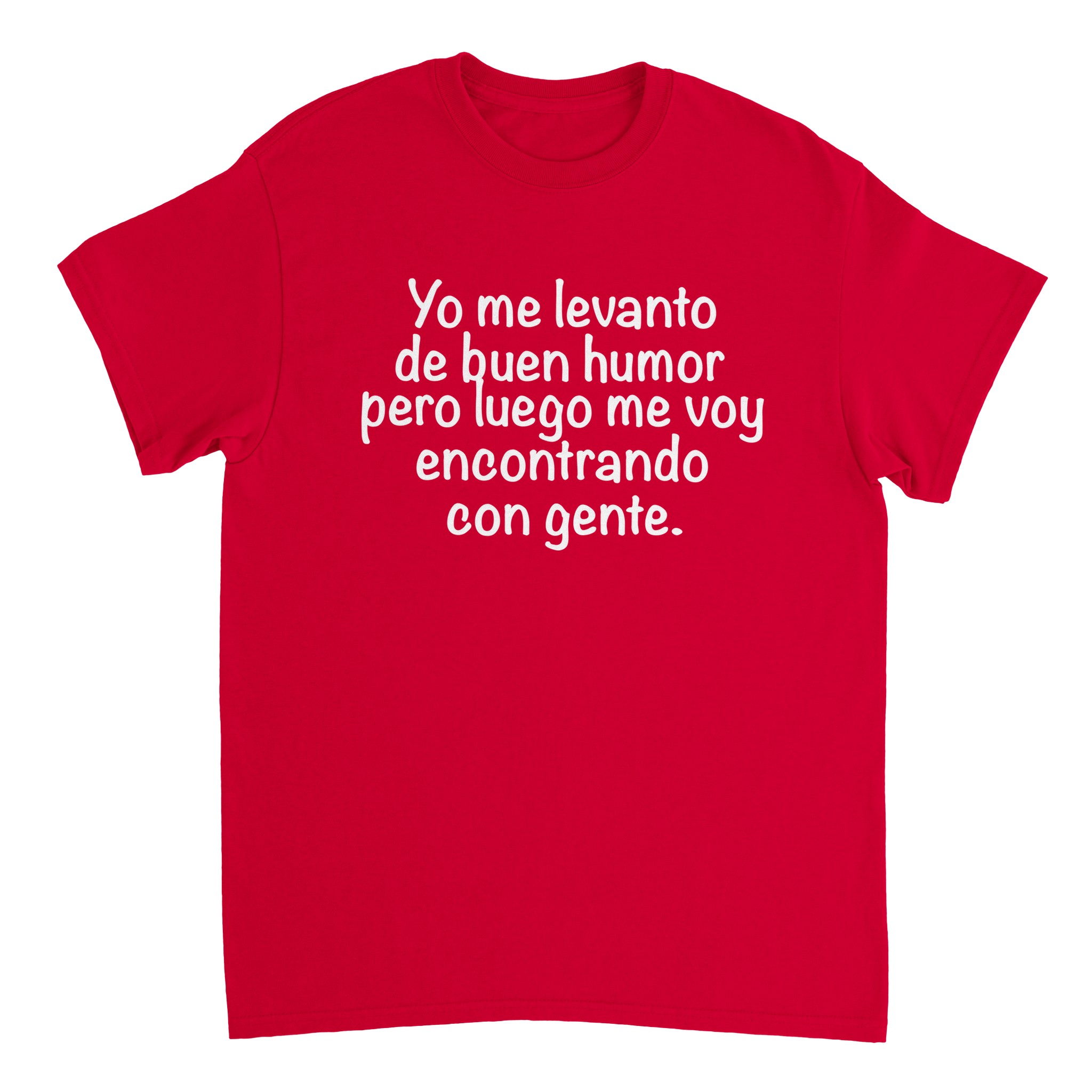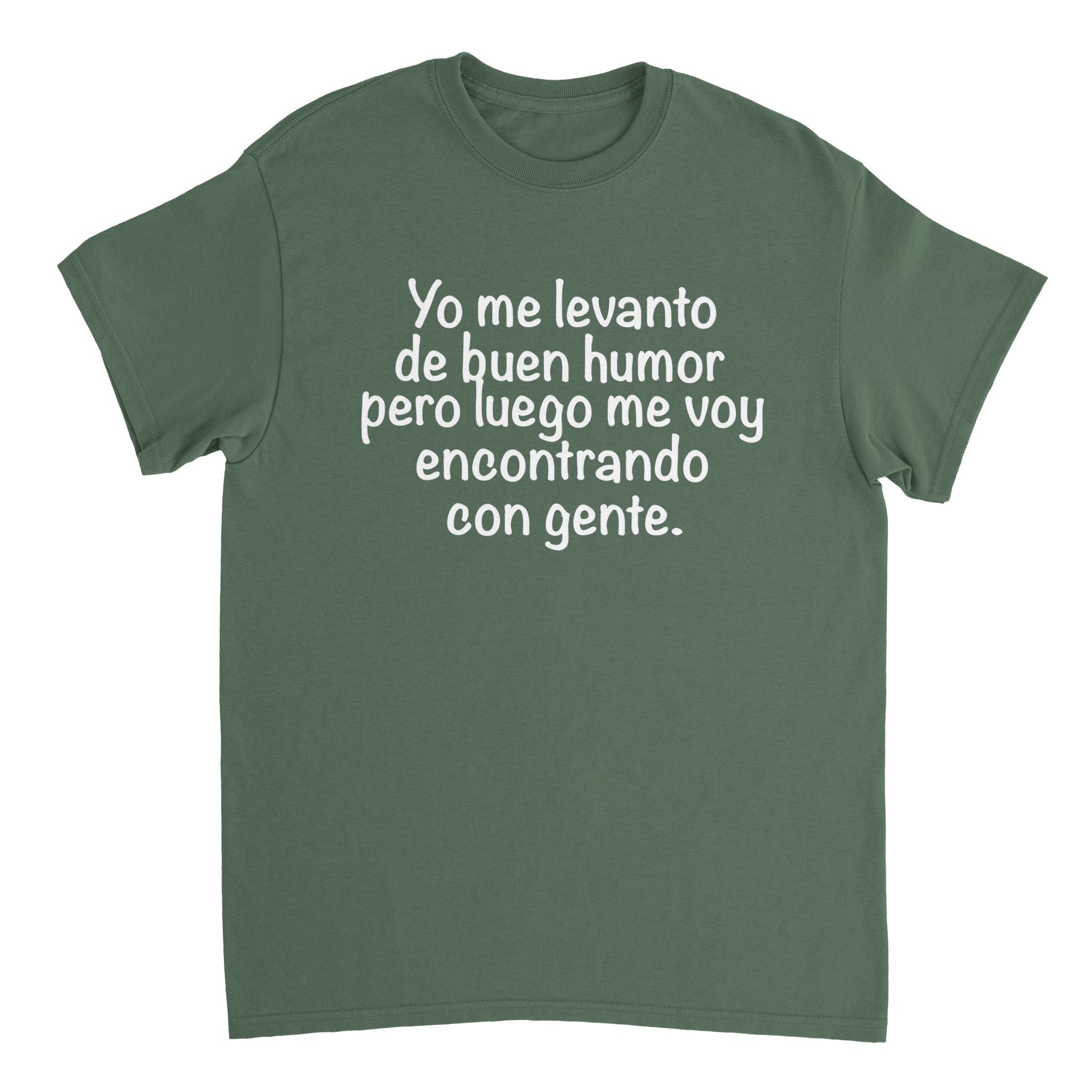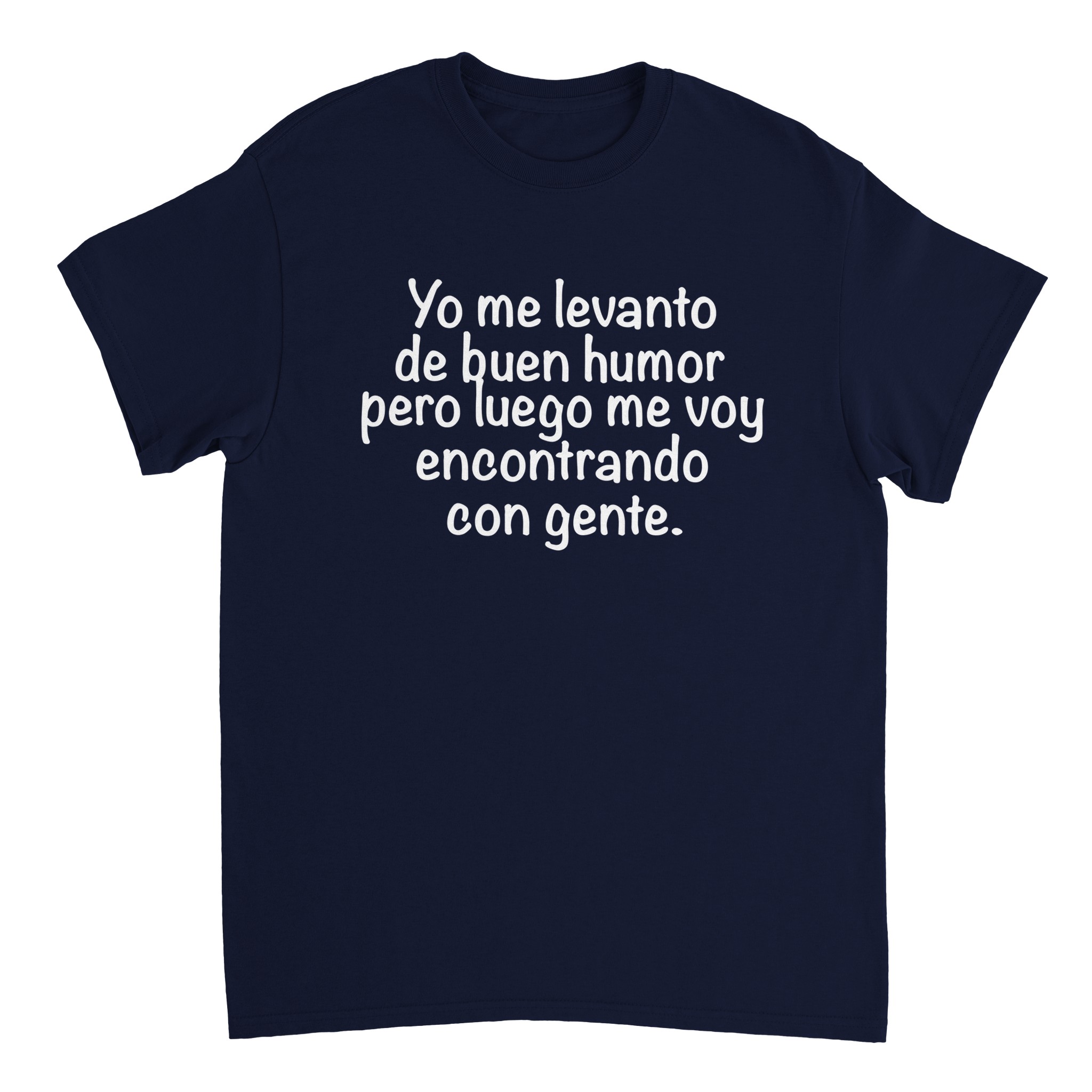 Esta camiseta está especialmente pensada para esa gente que se levanta de buen humor pero que le va cambiando el ánimo con cada persona que se cruza en el día.